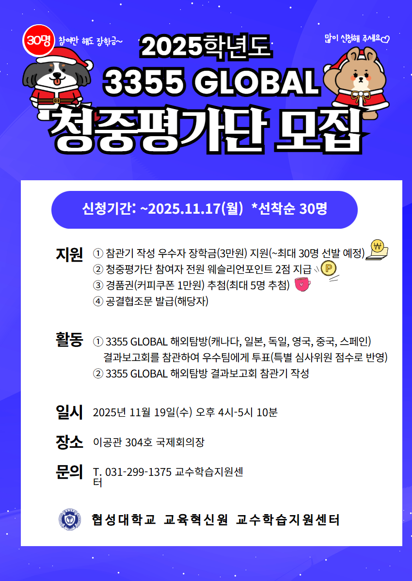 • 선착순30명 장학금기회 11.19(수) 4시 3355global 청중평가단모집